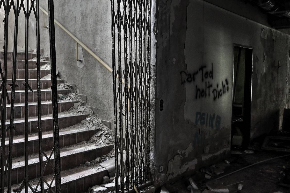 Selbst durch (zuviel) Information im Internet über diese ehemalige Heilanstalt – in Folge Lebensborn-Heim und schlussendlich Hotel – angelockt, machte sich in mir nach kurzer Zeit des Umherschauens blankes Entsetzen breit. Kaum habe ich bisher einen Lost Place gesehen, in dem nahezu alle Überbleibsel derartig zerstört wurden.